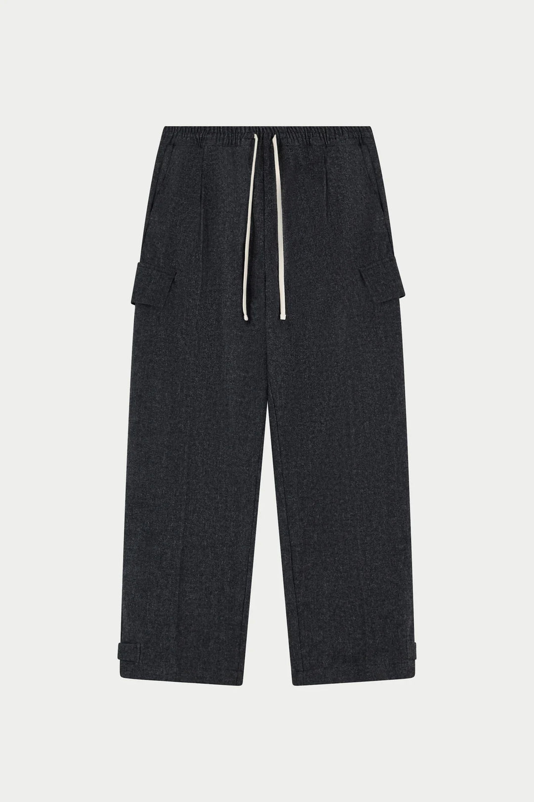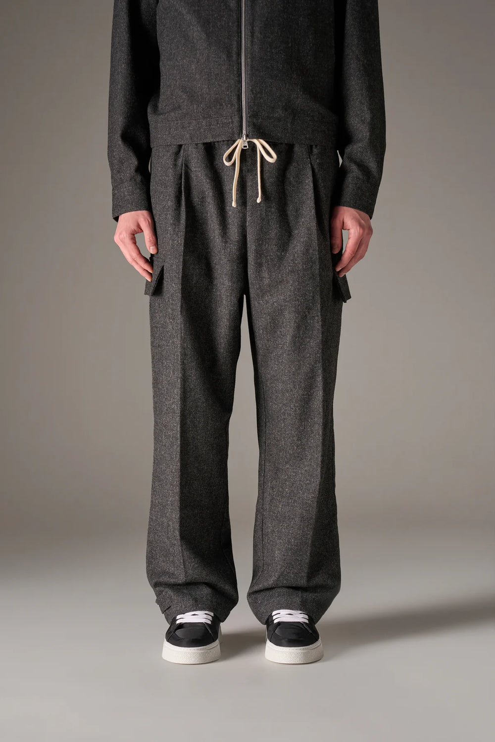 WIDE LEG HERRINGBONE TROUSERS - CHARCOAL