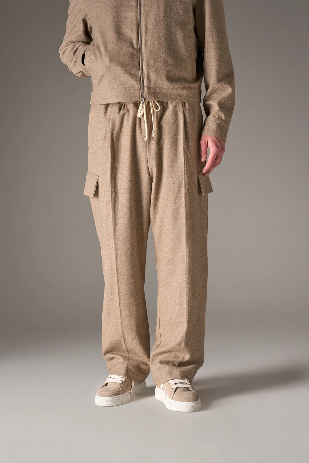 SMART TIE BELTED TROUSERS STONE