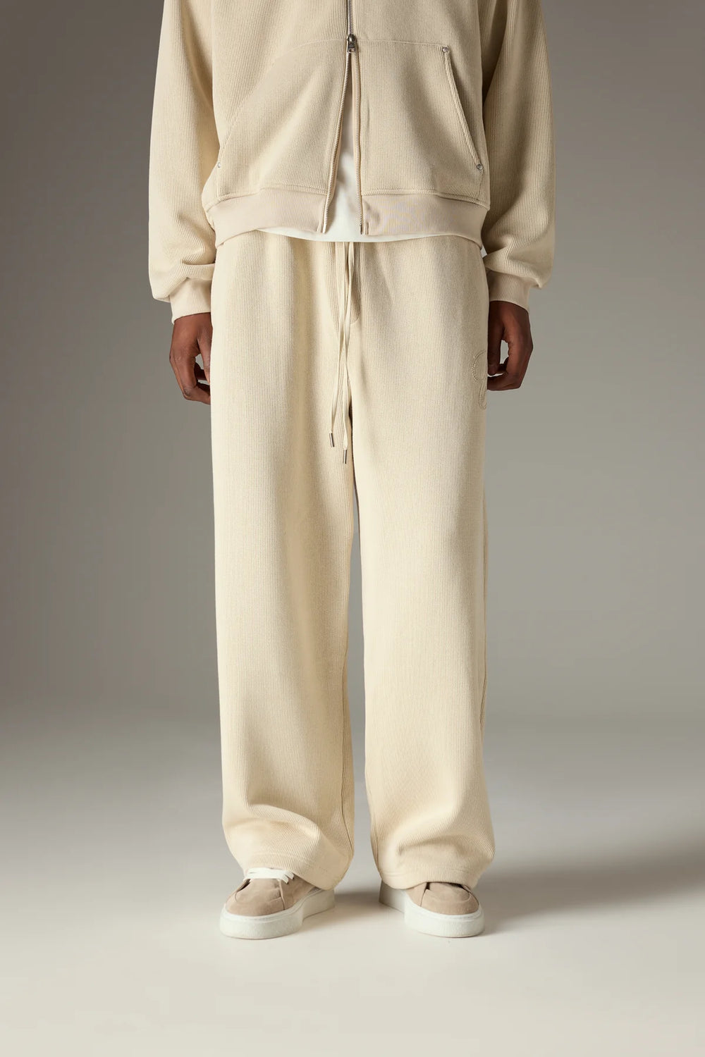 KNIT CONTRAST DRAWCORDS RELAXED JOGGERS - BEGIE