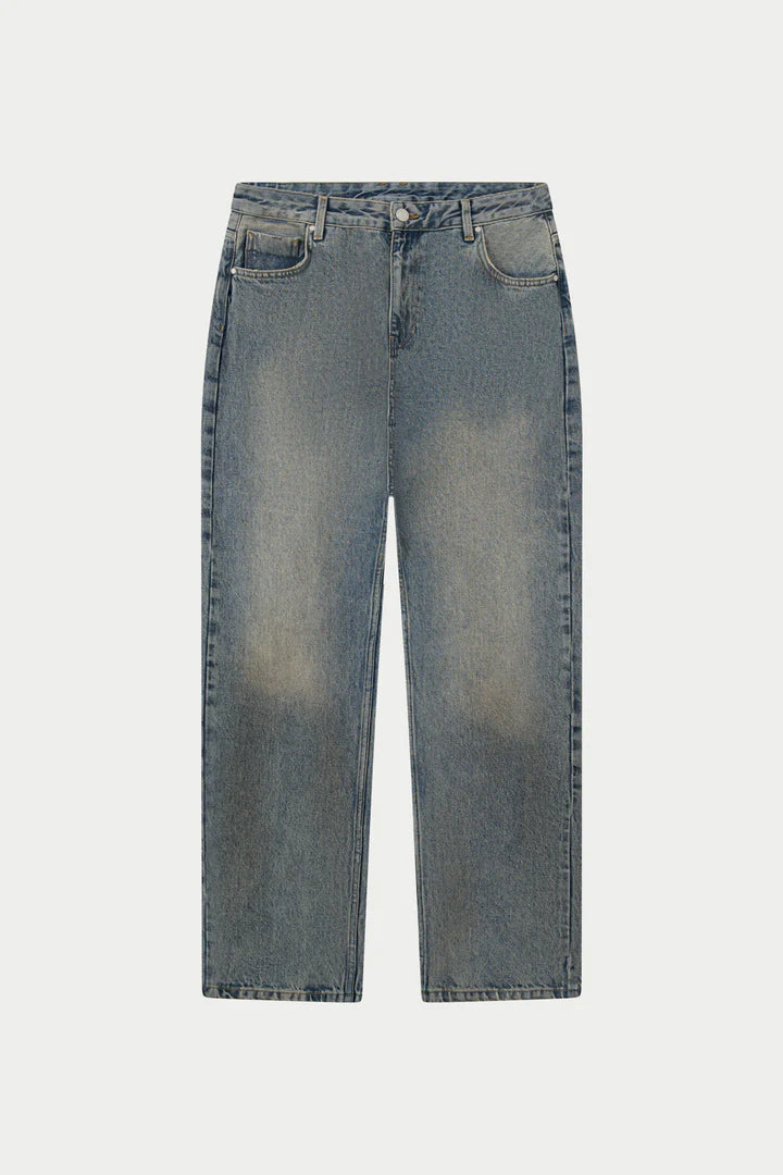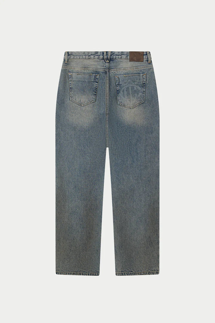 VINTAGE WASHED EMBLEM STRAIGHT LEG JEANS BLUE WASH
