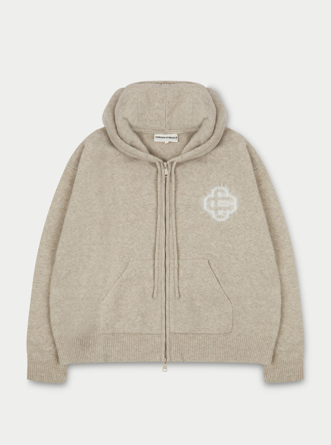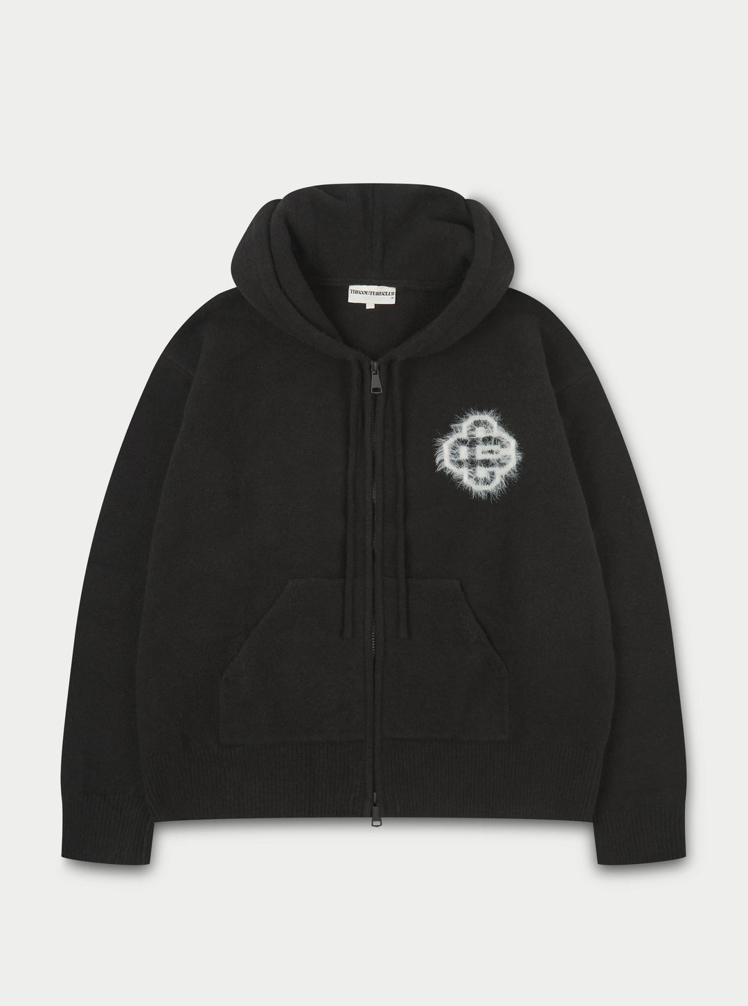 FLUFFY EMBLEM ZIP THROUGH KNITTED HOODIE