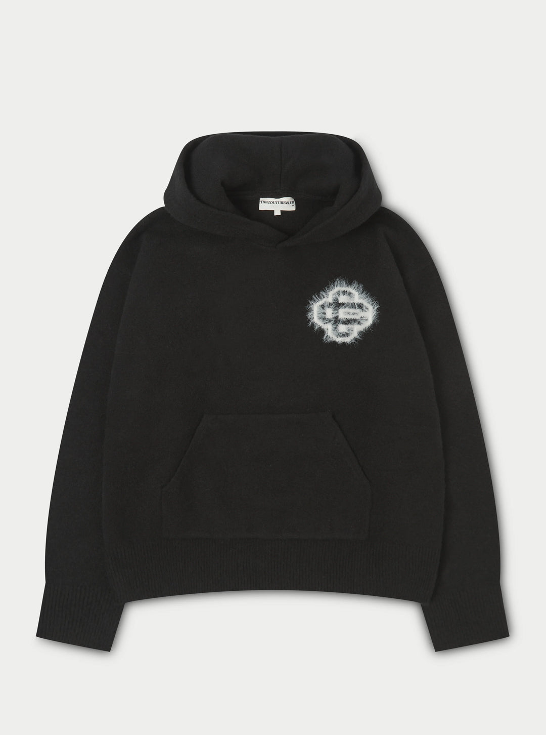 FLUFFY EMBLEM KNITTED HOODIE