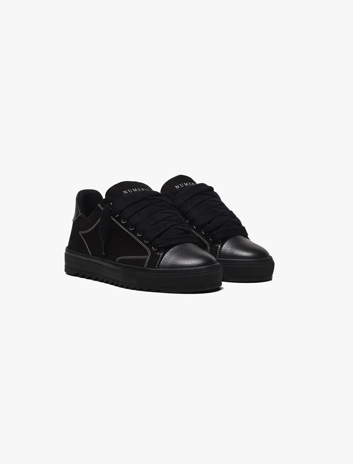 Numeris | The Atelier trainer was inspired by the Parisian lifestyle. Every stitch and detail was meticulously designed in a Parisian workshop. Carbon features a premium black nubuck upper with crisp white stitching and finished with our signature pebbled leather black toe cap, sitting on top of our exclusive black complex rubber sole. The interior of the trainer features black collar lining providing unrivalled comfort. The final touches see our Numeriś branding on the heel and tongue of the shoe.