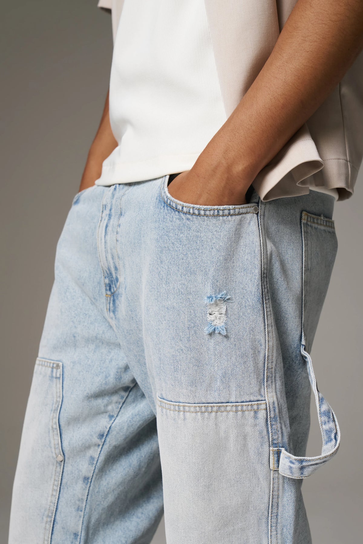 DENIM RIVET DETAIL CARPENTER JEANS